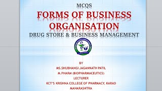 MCQ’S on Forms of Business Organisation | Chapter-2 | DSBM | D Pharm | By Prof. S. S. Kuthar|